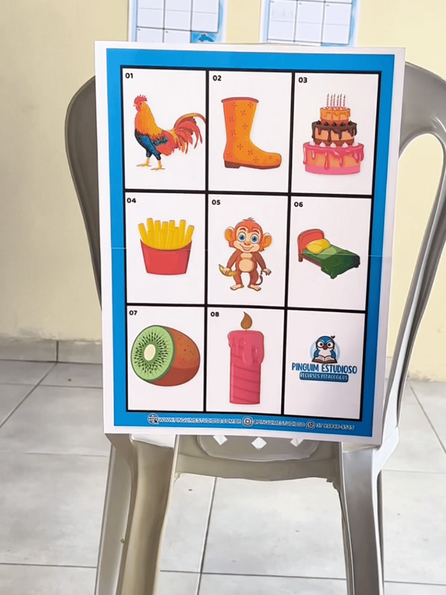 A criança observa as imagens, memoriza, corre até a ficha e escreve o nome correto — tudo isso enquanto desenvolve foco, raciocínio e escrita de forma natural e envolvente!